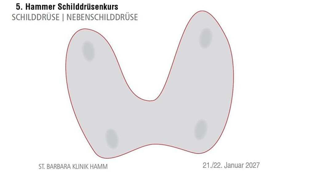 wir möchten hiermit recht herzlich zu unserem 5. Schilddrüsenkurs am 21. und 22. Januar 2027 in Hamm/Westfalen, Deutschland, mit dem Schwerpunkt Operationen der Schilddrüse/Nebenschilddrüse einladen.
